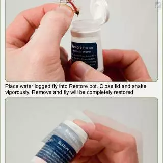 Easy to use: Place water logged fly into Restore pot. Close lid and shake vigorously. Remove and fly will be completely restored.