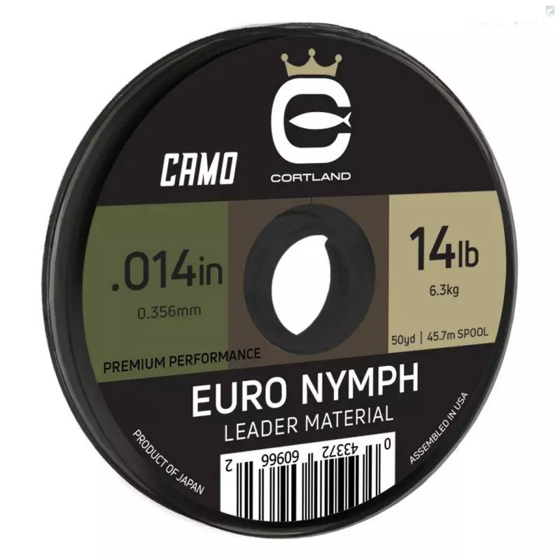 Euro Nymph Leader material is a camouflage colored nylon featuring a super-slick finish. A perfect blend between stiffness and suppleness allows you to deliver heavy tungsten fly patterns with ease yet the line remains memory free in your hands. Perfect for building Nymph rigs and tapering your own dry fly or dry dropper leaders. Large spool size (50 yards or 40 yards).
