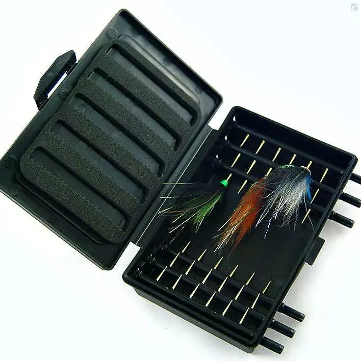 Box’s inside cover has foam, which can be used to hold normal hook flies or hooks for your tube flies.