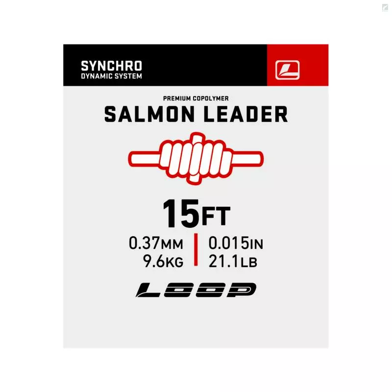 Loop Synchro Salmon Leader Made from premium copolymer, Loop Synchro Dynamic System (SDS) Tapered Salmon Leaders are designed to synchronise energy transfer from the fly line to the fly with seamless proficiency. Loop tapered leaders retain maximum knot strength per weight class and benefit from a low refractive index when submerged in water. With an optimised taper configuration, each of our abrasion resistant leaders ensures perfect fly turnover cast after cast.