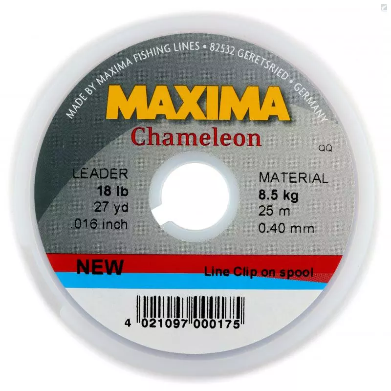 Maxima Chameleon is very hard and abrasion resistant tippet material. Many anglers believe that there is no stronger more durable leader material than Maxima. Period. It has gained fanatical following of the most renowned trout, bass, steelhead, salmon and saltwater anglers. This is because of its 100% constancy and total reliability. Maxima has a high durability finish that avoids nicks and abrasions. This finish also helps to control knot slippage, which is a major factor in knot breakage.