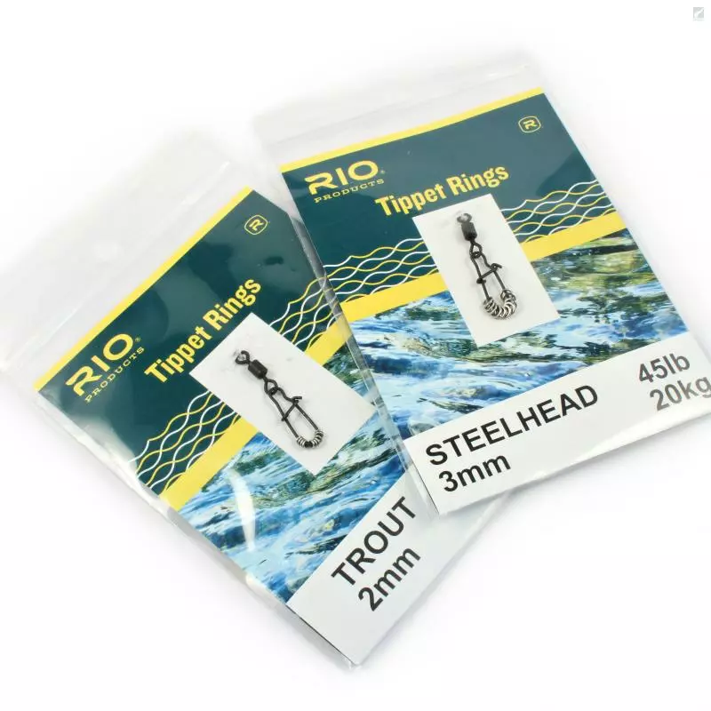 RIO Tippet Rings are small, very strong and lightweight, and make rigging and tippet replacement fast and easy. A leader with a tippet ring turns over perfectly, and they are light enough to use when fishing dry flies. Just tie the tippet ring to a leader with a clinch knot, and then add the required tippet in the same way. Tapered leaders last longer with a tippet ring as the leader will not be shortened every time the angler replaces the tippet. Tippet rings also make it extremely easy to add droppers, and are an excellent choice for European Style Nymphing and for Indicator nymph fishing.