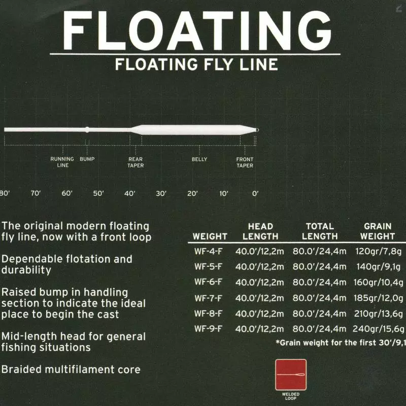 | Line weight | Head length (meters/feet) | Total length (meters/feet) | Weight (grains/grams) |