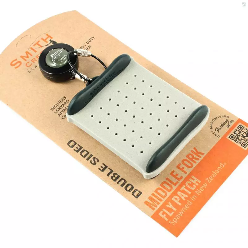 The Smith Creek Middle Fork Fly Patch is the patented, extreme access, double-sided fly patch system designed with exposed ribs that protect your flies from loss due to rub-offs. Never before has it been easier to see and access your flies. It holds a lot of flies securely in custom micro slit foam and protected from damage or loss by its patented exposed ribs. Worn on it’s zinger, or a lanyard, makes it exceptionally easy to use. It’s designed to be worn on vests or clothing, chest / sling packs. For use on lanyards or D-rings an alternative attachment cable is provided.