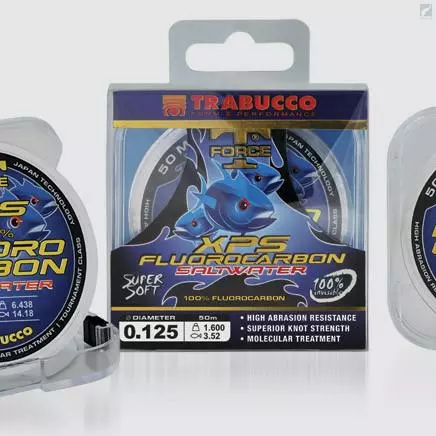 Trabucco T-Force XPS Fluorocarbon Saltwater is made of 100% fluorocarbon, super soft and specifically designed for the most challenging techniques in saltwater. Vast range of diameters, going from 0.12 to 1.00, in 50 meters spool from 0.12 to 0.50 and in 25 meters wrist spools in bigger diameters.