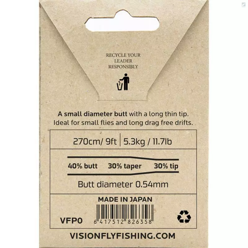 Vision Prisma Fluorocarbon Leader – New modern fluorocarbon leader especially designed for fishing in ultra-clear, slow moving waters inhabited by fish with PhD in do-not-try-to-fool-me. Almost illegally good in normal conditions. Available in both 9′ and 13′ lengths. One leader per package.